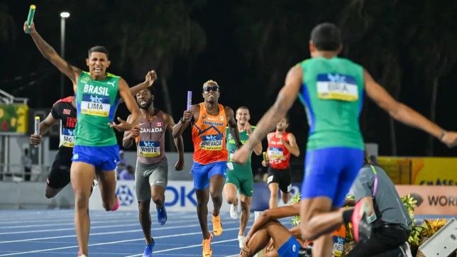 Em Bahamas, o Brasil começou bem a bateria da repescagem com Lucas Carvalho, seguido de Lucas Vilas. Ambos mantiveram a liderança até a entrega do bastão a Vitor de Miranda, que perdeu ritmo mas conseguiu recuperar a dianteira para entregar o bastão a Matheus Lima. Último do quarteto, o cearense de 20 anos fechou a prova em primeiro lugar, garantindo a vaga em Paris. As outras cinco vagas no Mundial ficaram com Estados Unidos (também na repescagem), Trinidad e Tobago, Espanha, Polônia e Índia.