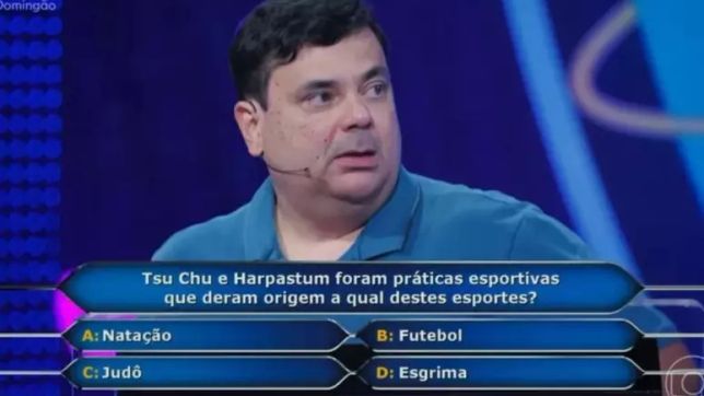 Pratines resolveu eliminar duas alternativas erradas, sobrando “futebol” e “esgrima”. Ele, então, escolheu esgrima como sua resposta final, e errou. Ao descobrir que futebol era a opção certa, ele lamentou, mas acabou indo para casa com um prêmio de R$ 300 mil.