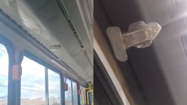 Passageiras da linha de ônibus 383, no Rio de Janeiro, precisaram colar absorventes no teto do veículo para impedir que goteiras continuassem pingando água suja em suas cabeças.