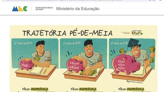 O governo federal publicou um alerta de que páginas falsas na internet estão cobrando valores indevidos para inscrição no Pé-de-Meia. O programa, que combate a evasão escolar, não requer cadastro ou inscrição dos beneficiários, no entanto. Nem cobra taxa para isso.