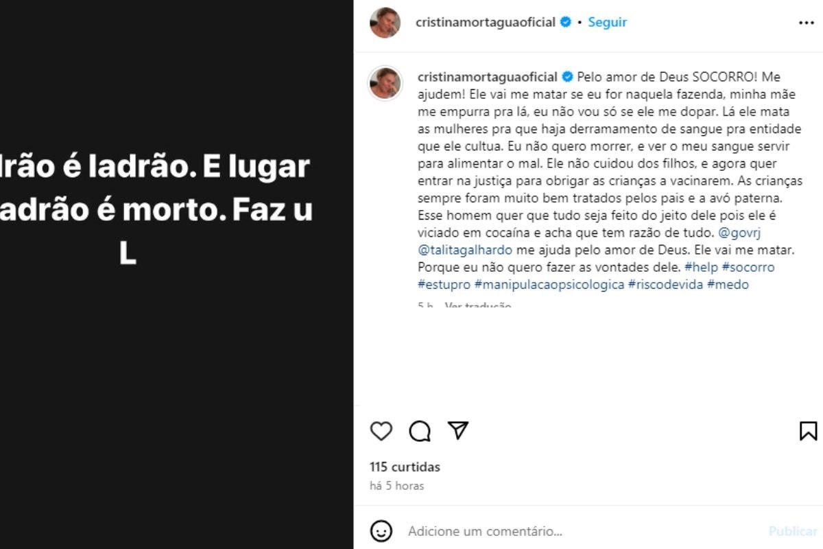 Durante a madrugada, Cristina Mortágua fez uma série de publicações estranhas, onde chegou a pedir ajuda ao governador do Rio, Cláudio Castro, e ao Batalhão de Operações Policiais Especiais (Bope). Em um dos relatos, ela fala de uma pessoa que conheceu quando estava grávida, diz que foi abusada e que sofre ameaças.