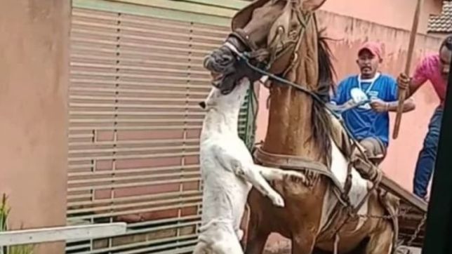 O cavalo atacado estava preso em uma carroça e tentou se defender do ataque dando coices. Mesmo assim o cachorro não parou com suas mordidas. Ainda no registro é possível ouvir uma mulher gritando e pedindo socorro. “Cadê o dono desse cachorro. Mata esse cachorro aí”, disse.
