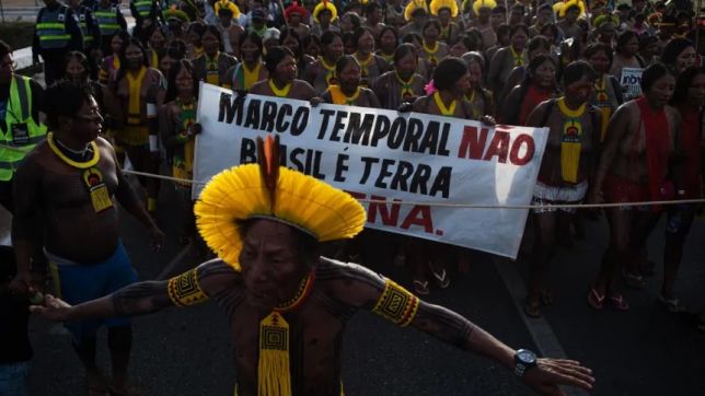 O grupo de indígenas está na capital federal para acompanhar de perto o julgamento do Supremo Tribunal Federal (STF) que poderá definir a nova forma de demarcação de terras no Brasil — o chamado marco temporal.