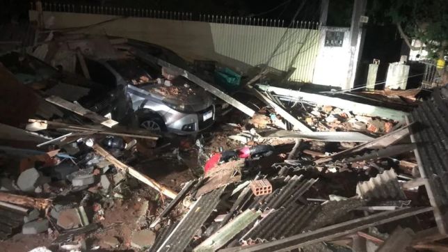 Imóveis, comércios, carros e ruas ficaram destruídos na comunidade do Monte Cristo. Duas pessoas se feriram