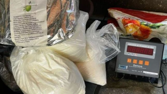 Dentro dos refrigeradores foram encontrados 14 kg de substância branca análoga à pasta-base de cocaína, 4,5 kg de substância análoga a crack, 26,2 kg de substância identificada como sorbato de potássio, 15 pinos de substâncias análoga à cocaína, 3 kg de pinos vazios, 3 embalagens de cloreto de sódio, 3 frascos de cloro, 1 embalagem de metabissulfito de sódio e 1 embalagem de hipossulfito de sódio.