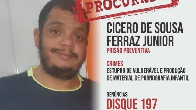 Goiânia – A Polícia Civil de Goiás (PCGO) procura um homem identificado como Cícero de Souza Ferraz, 38 anos. Ele é suspeito de estuprar uma adolescente, de 13 anos, e registrar o crime em vídeo, em Valparaíso de Goiás, no Entorno do Distrito Federal (DF).