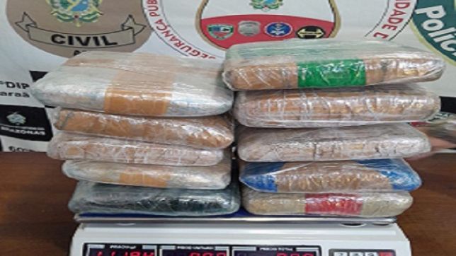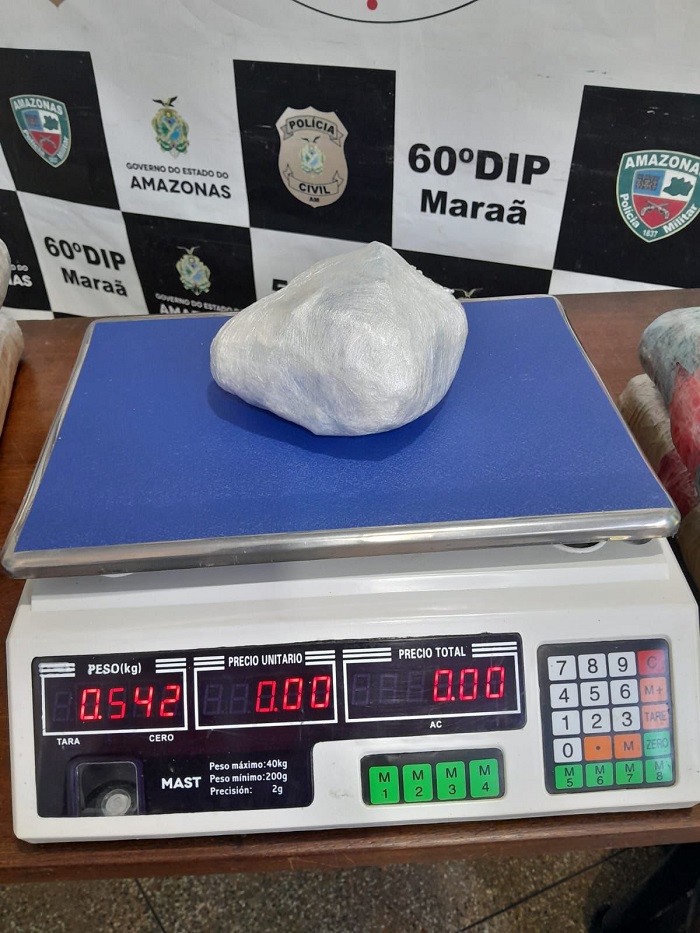 Policiais civis da 60ª Delegacia Interativa de Polícia (DIP) de Maraã, distante 634 quilômetros de Manaus, prenderam em flagrante, Paulo Nascimento Rufino, 31, com aproximadamente 12 quilos de drogas, entre maconha do tipo skunk e cocaína, totalizando um prejuízo de R$ 150 mil ao tráfico de drogas.