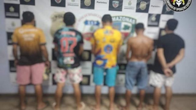 Equipes do 11° Batalhão da Polícia Militar prenderam cinco homens de 21, 24, 26, 40 e 42 anos acusados de furto, associação criminosa e apologia ao crime, fato ocorrido na Rua 13 no bairro da Vila Cristina, município de Parintins, distante 359 quilômetros de Manaus.