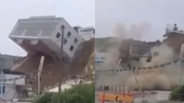 Um vídeo de compartilhado nas redes sociais mostra o momento em que um prédio "rola" em um barranco após um deslizamento de terra em Tijuana, México, no domingo (9).