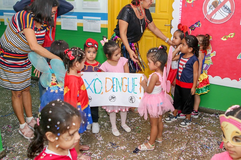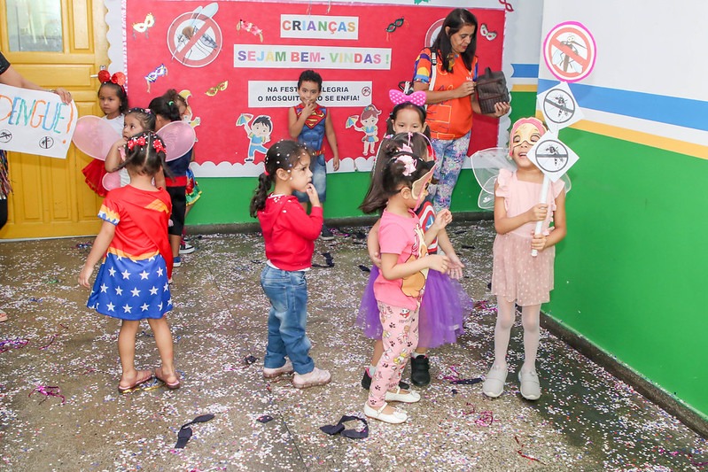 A Prefeitura de Manaus, por meio da Secretaria Municipal de Educação (Semed), realizou, nesta quinta-feira, 8/2, no Centro Municipal de Educação Infantil (Cmei) Maria do Céu Vaz D’Oliveira, localizado no Planalto, zona Oeste da capital, um baile de Carnaval com o tema "Na festa da alegria, o mosquito não se enfia". A ação busca conscientizar as crianças, mostrando que, mesmo pequenos, podem fazer uma grande diferença no combate ao mosquito Aedes aegypti.