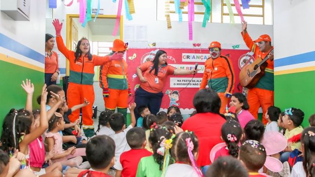 As professoras aproveitaram o momento para reforçar o que as crianças aprenderam em sala de aula sobre prevenção e também ressaltaram a importância de hábitos saudáveis e cuidados com o meio ambiente, como explica a professora Maria Leiliane Santos, do Maternal 3.