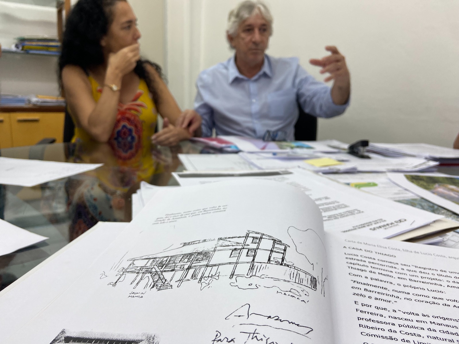 “Tinha este imóvel que não tinha função definitiva e o prefeito sugeriu que se prestasse uma homenagem ao poeta, jornalista e amazônida Thiago de Mello. E em reunião com a filha dele, chegamos ao casarão para reunir grande parte do seu acervo, algumas reconstituições, como os projetos de duas casas que foram construídas em Barreirinha, pelo arquiteto Lúcio Costa”, disse Valente.