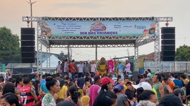 Em homenagem ao Dia das Crianças, comemorado na quinta-feira, 12/10, a Prefeitura de Manaus, por meio da Fundação Municipal de Cultura, Turismo e Eventos (Manauscult), reuniu aproximadamente 12 mil crianças no campo do Teixeirão, Zona Leste, numa tarde de muita diversão e brincadeiras, com entrega também de brinquedos e kits de alimentos.