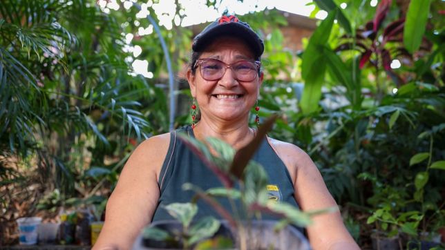 Tereza Garcia, agricultora aposentada e estudante de viveicultura, aproveita a doação de mudas para aumentar a quantidade de plantas no quintal de casa, no bairro Novo Aleixo, na zona Leste, e também no seu sítio. Ela é mais uma apaixonada por plantas que compreende a importância de cultivá-las.