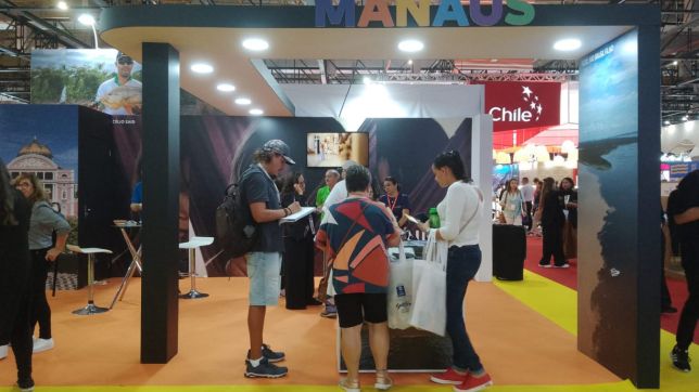 O estande também acomoda 16 empresários do turismo local, que junto à equipe técnica da prefeitura oferecem brindes, artesanatos regionais produzidos com sementes, bananinha frita, balas de cupuaçu e castanha do Brasil e um rico material promocional da cidade.