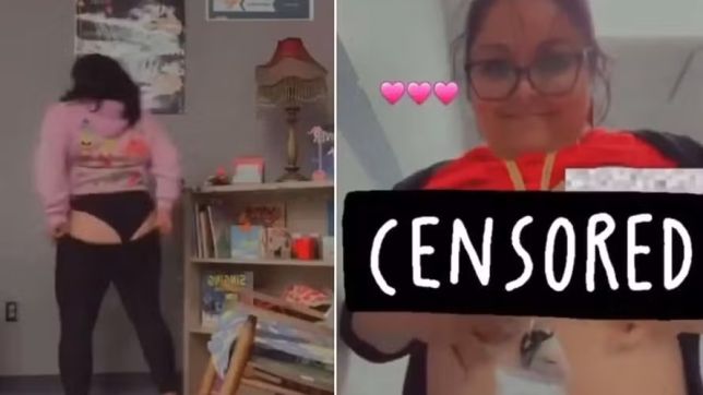 Nas imagens, a professora pode ser vista mostrando os seios e as nádegas nus para a câmera na sua sala de aula e num banheiro do colégio.