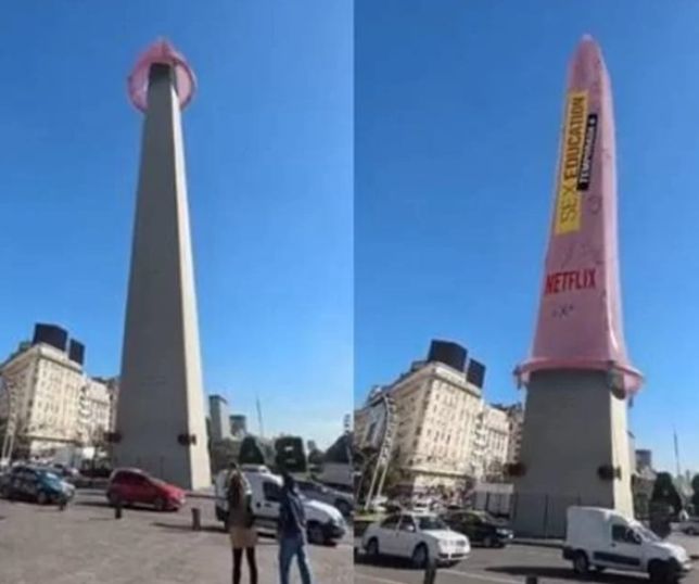 Obelisco é coberto com camisinha gigante para divulgação de série