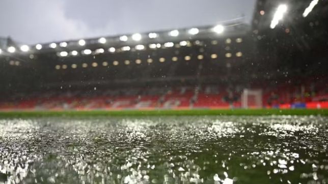 Água cai no estádio Old Trafford, do Manchester United, após forte chuva