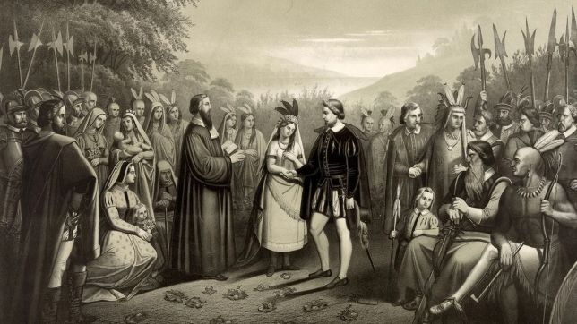 Rolfe, um homem profundamente religioso, não parecia querer se casar com uma "pagã", mas eventualmente escreveu ao governador pedindo permissão para se casar com ela, afirmando que seus sentimentos eram sinceros — na verdade, o casamento possivelmente era uma forma de pacificar a complicada relação com o povo powhatan e assim conseguir mais terras para plantar tabaco.