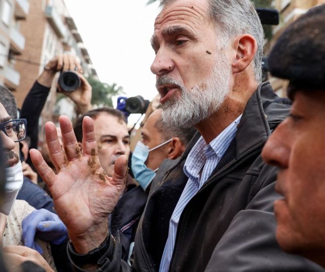 A visita dos reis da Espanha e do presidente do Governo, Pedro Sánchez, às regiões atingidas pelas enchentes de Valência terminou com insultos e lançamentos de lama que atingiram o rosto de Felipe VI e da rainha Letizia.