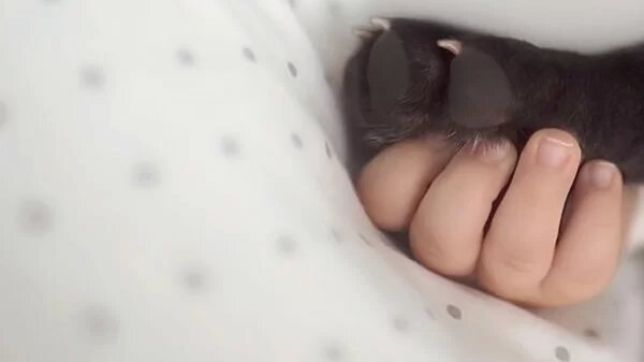 Nas imagens seguintes, à medida que o bebê cresce, a relação dos dois fica ainda mais estreita e forte. Pingo acompanha a amamentação e até as sonecas, sempre por perto do pequeno.