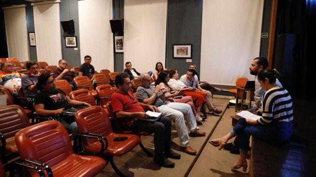 As associações folclóricas puderam acompanhar a reunião de repasse no Cine Teatro Guarany nesta segunda-feira (12/06)