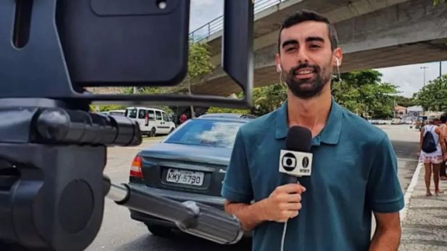 O jornalista João Vitor Brum, da Inter TV, afiliada da Globo no Rio de Janeiro, foi agredido e teve o equipamento danificado durante produção de uma matéria que fazia na rua.