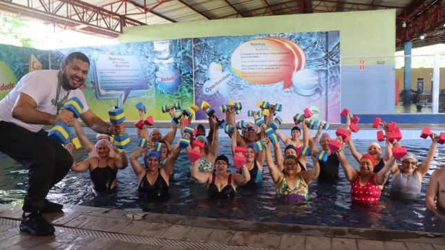 A hidroginástica, uma modalidade de exercício físico realizada em piscinas, é reconhecida por seus inúmeros benefícios, especialmente para aqueles que procuram uma atividade de baixo impacto. “A água reduz o peso corporal, aliviando a pressão sobre as articulações e ossos. Oferecendo benefícios para pessoas com artrite, problemas nas articulações ou em recuperação de lesões e outras patologias”, disse o profissional de educação física do RespirAR, Adriano Franco.