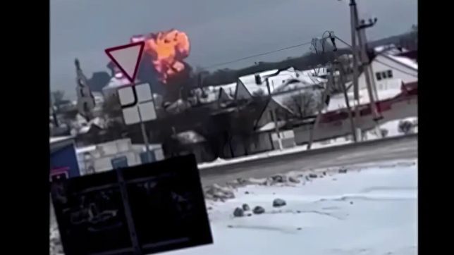 Um vídeo postado no aplicativo de mensagens Telegram por Baza, um canal ligado aos serviços de segurança russos, e verificado pela Reuters, mostrou grande aeronave caindo em direção ao solo perto da vila de Yablonovo, na região de Belgorod, e explodindo em uma grande bola de fogo.