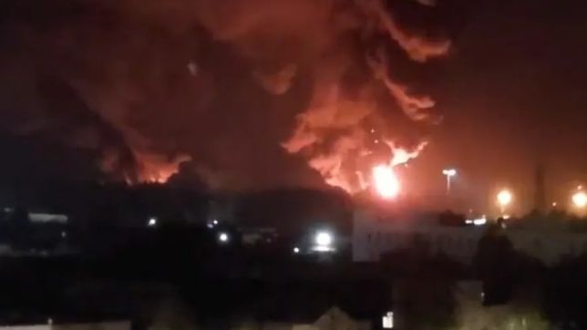 O governador Mikhail Vedernikov, de Pskov, postou no Telegram vídeos mostrando um grande incêndio com fumaça ondulante iluminando o céu noturno à distância, e o que pareciam ser defesas aéreas sendo disparadas contra drones que se aproximavam.
