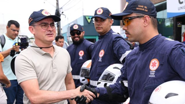 Prefeito de Manaus, David Almeida, cumprimentando os agentes do Samu 192
