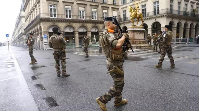 A preocupação com segurança é constante em todos os lugares que envolvem os Jogos de Paris. Do lado de fora, muitos policiais e homens das Forças Armadas com fuzis.