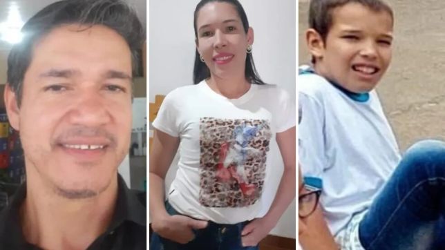 Luciano Lino de Sousa, suspeito de matar companheira e o filho dela, e as vítimas Monica Cristina da Silva Batista e Pedro Davi da Silva, em Araguapaz
