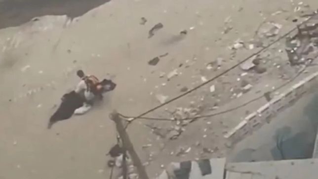 À frente do grupo, uma mulher se dirige para uma rua quando o som de um tiro é ouvido. Nesse momento, ela cai no chão, baleada. A criança e outros palestinos que acompanhavam a travessia entram em pânico e se dispersam. Não há informações sobre a identidade da mulher e nem sobre o estado de saúde da vítima.