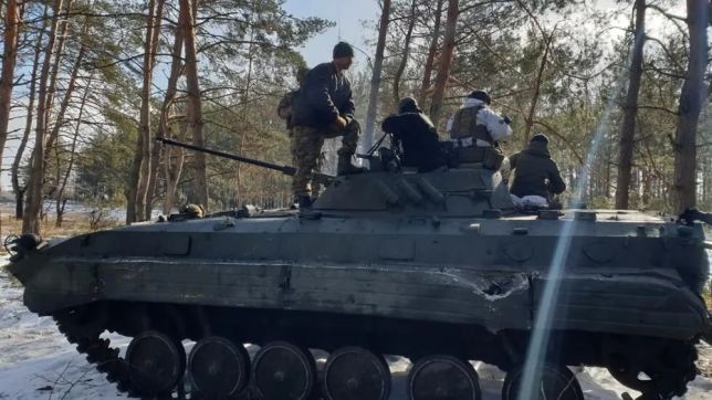 Um veículo de combate blindado russo também foi restaurado para funcionar. Enquanto aguardam o registro oficial do veículo, os militares o mantém afastado da frente de batalha.