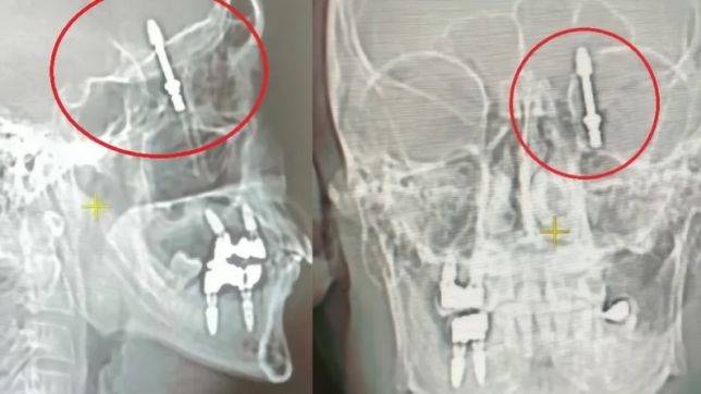 O problema é que, quando o dentista foi colocar um implante no maxilar superior, o parafuso era tão grande que chegou ao crânio, quase atingindo o cérebro. Como o paciente desmaiou de dor, o profissional percebeu que havia algo errado e fez um raio-x. Foi aí que viu o parafuso preso no crânio. De acordo com o jornal, o dentista imediatamente levou Ramazan para um hospital.