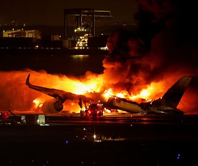 Avião com 379 a bordo bate em outra aeronave e pega fogo no aeroporto de Tóquio; veja vídeo