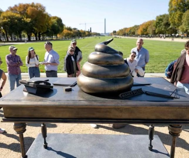 Monumento com fezes em bronze aparece em local público próximo ao Capitólio