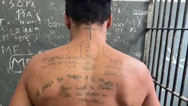 Segundo a emissora, o que também chamou a atenção dos policiais foram as tatuagens que ele tem no corpo. Uma delas diz: "O preço da traição é a morte".