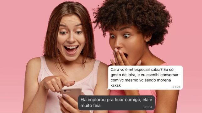 Em uma delas, um homem diz que ficou com outra mulher por solidariedade, já que a moça “era feia”. “Ela implorou pra ficar comigo”, diz o homem tentando se explicar.