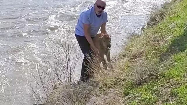 Clifford Walters estava visitando o parque de Yellowstone em 20 de maio quando viu um filhote de bisão. O filhote tinha se separado da mãe quando a manada cruzou o rio.