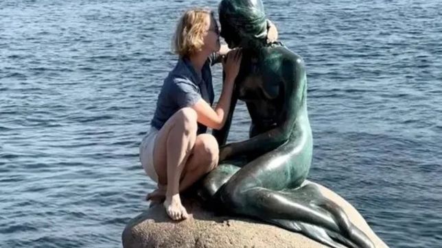 Uma turista provocou revolta nas redes sociais depois de subir na famosa estátua da Pequena Sereia, em Copenhague (Dinamarca) e beijar e acariciar a escultura de metal.