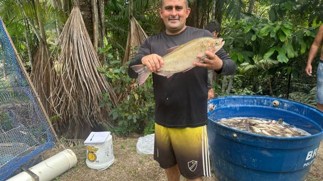 O piscicultor Danilo Antônio, do ramal Santo Antônio, Km 47 na AM-010, é um dos piscicultores que participará do Feirão do Pescado. Na segunda-feira (25/03), o piscicultor deu início a despesca de uma tonelada de matrinxã e uma tonelada de tambaqui, que serão fornecidos durante a feira.