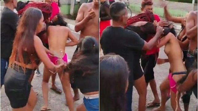 No auge da pancadaria o vestido da mulher que foi o alvo das agressões é puxado, expondo os seios e nádegas, bastante franzinos, mas que mesmo assim, alegram a ‘galera” que assiste à briga.