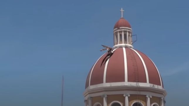 “Cidade de Granada, um dos maiores atrativos turísticos da Nicarágua, foi o cenário do impressionante avistamento de uma criatura nunca antes vista de dia. Há boatos entre os moradores de que o demônio habita a igreja catedral Imaculada Conceição de Maria. Um turista subiu em uma das torres mais altas da Catedral para obter melhores tomadas da paisagem, mas, para a sua surpresa, algo, ou alguém, também estava subindo em uma das torres. O turista não hesitou em gravar o arrepiante acontecimento que mostrarei a seguir”, diz no início do vídeo, texto que também pode ser conferido na descrição da gravação.