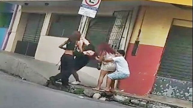 Um dos travestis se agarra nos cabelos compridos do adversário, depois aplica socos no mesmo até desmaiá-lo, como mostram as imagens publicadas no começo da tarde, nas redes sociais e em grupos de WhatsApp.