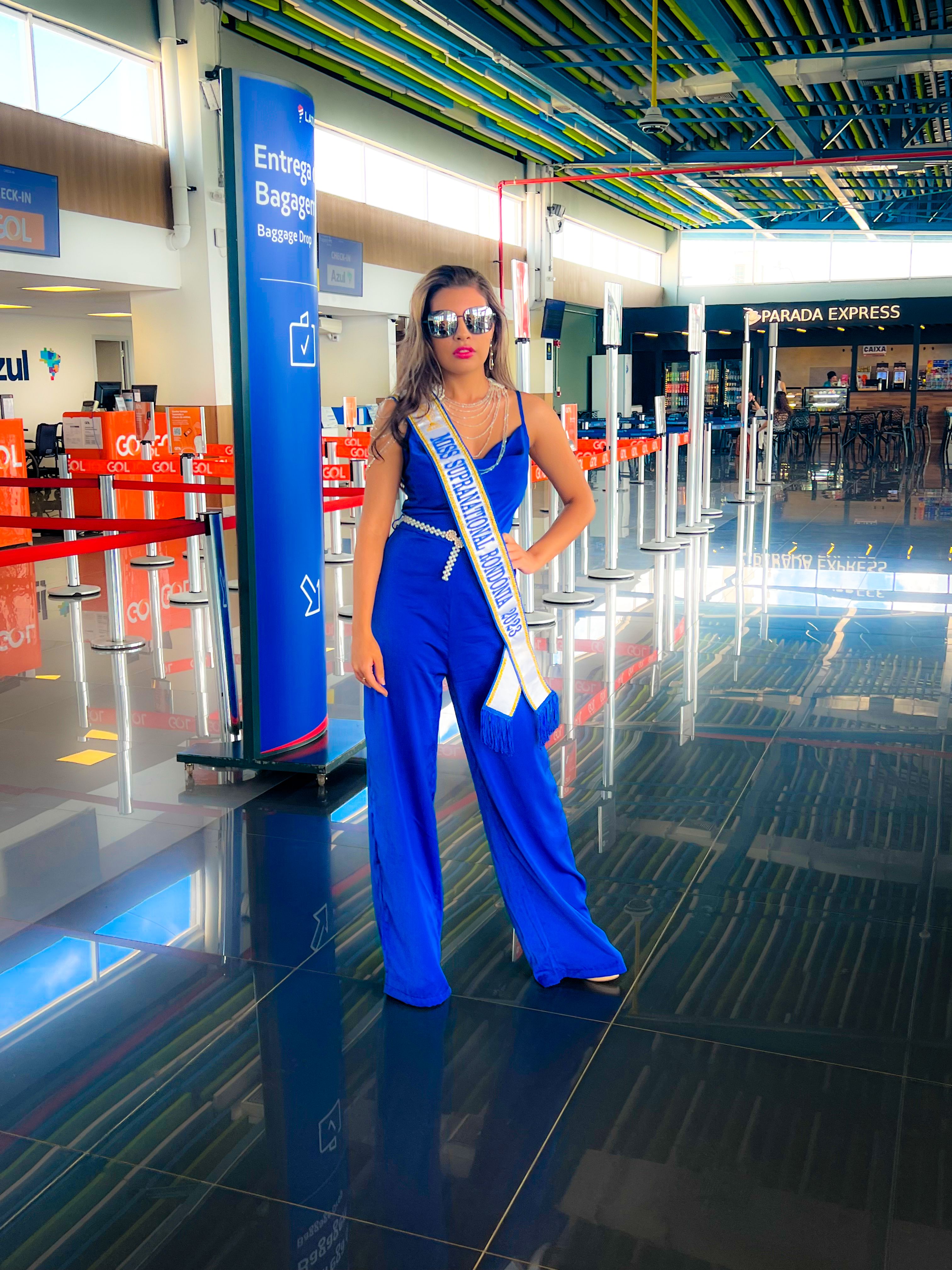 Em seguida, Khrystma recebeu a faixa do concurso, no qual representa o Estado de Rondônia.