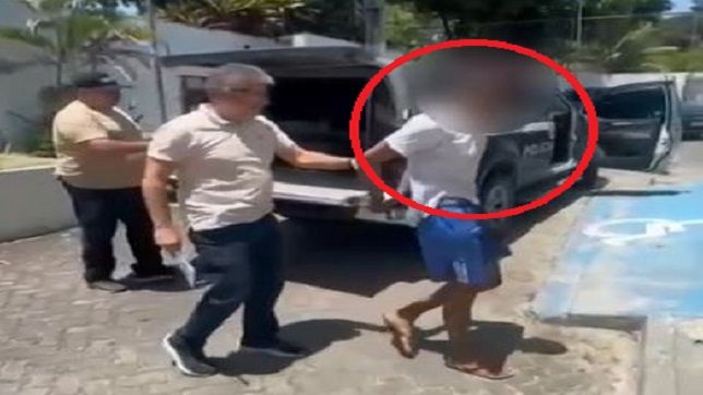 Assaltante sendo conduzido ao 22º DIP para os procedimentos
