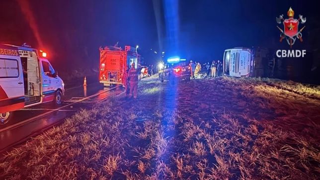 Um ônibus de viagem capotou, na noite deste domingo (23/11), após colidir contra um caminhão guincho, na BR-020, cerca de 10 quilômetros após Planaltina, sentido Formosa (GO). O acidente deixou mais de 23 feridos.
