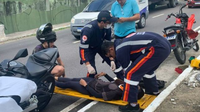 Em seguida, o condutor de uma MT-03, que vinha logo atrás, acabou atingindo o pneu da Pop que já estava no chão. Apesar da colisão, ele sofreu apenas escoriações leves e recebeu atendimento no local, sem necessidade de remoção.